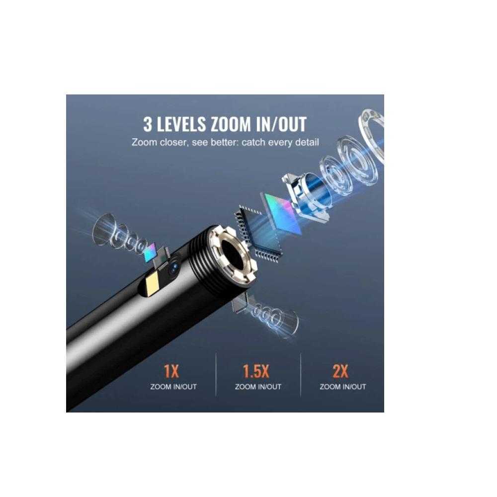 Ανακαλύψτε την προηγμένη ενδοσκοπική κάμερα VEVOR, ιδανική για επαγγελματική και οικιακή χρήση. Εξοπλισμένη με τριπλό φακό και καλώδιο μήκους 16.4 ποδιών, προσφέρει εξαιρετική ευελιξία και ευκολία στη χρήση.