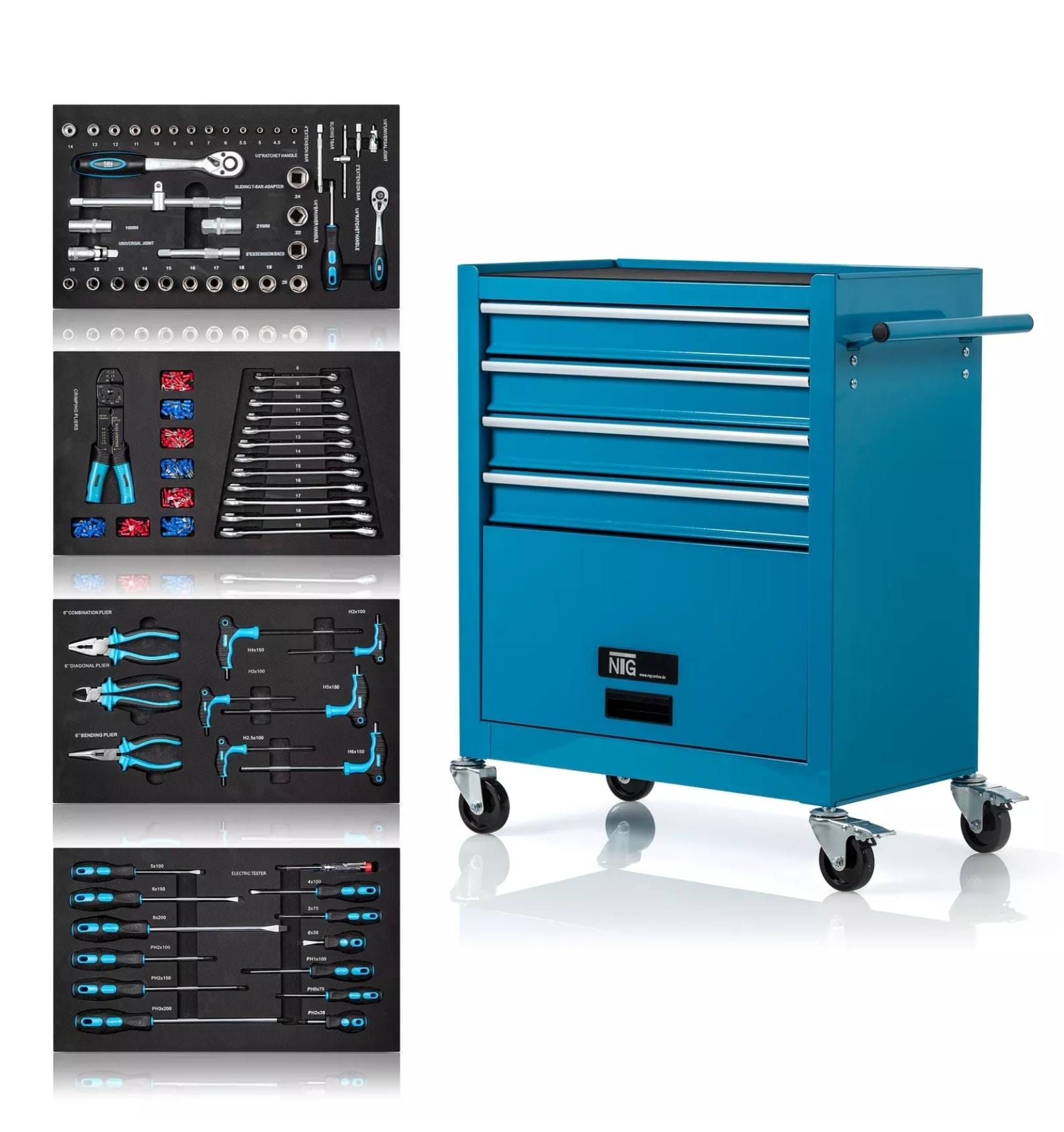 NTG – Τροχήλατη Εργαλειοθήκη με 70 Εργαλεία – 4 Συρτάρια
